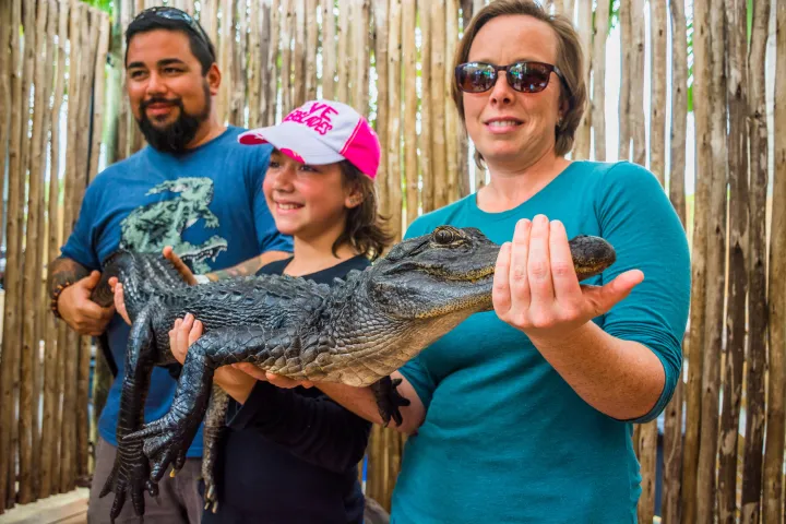 3 Custom Tours in 1 Unforgettable Experience! Get up close with behind-the-scenes animal meet-and-greets, engage in thrilling alligator encounters, and enjoy a private, customized airboat tour—all in one incredible three-hour adventure. This package also includes souvenirs and refreshments for your group.